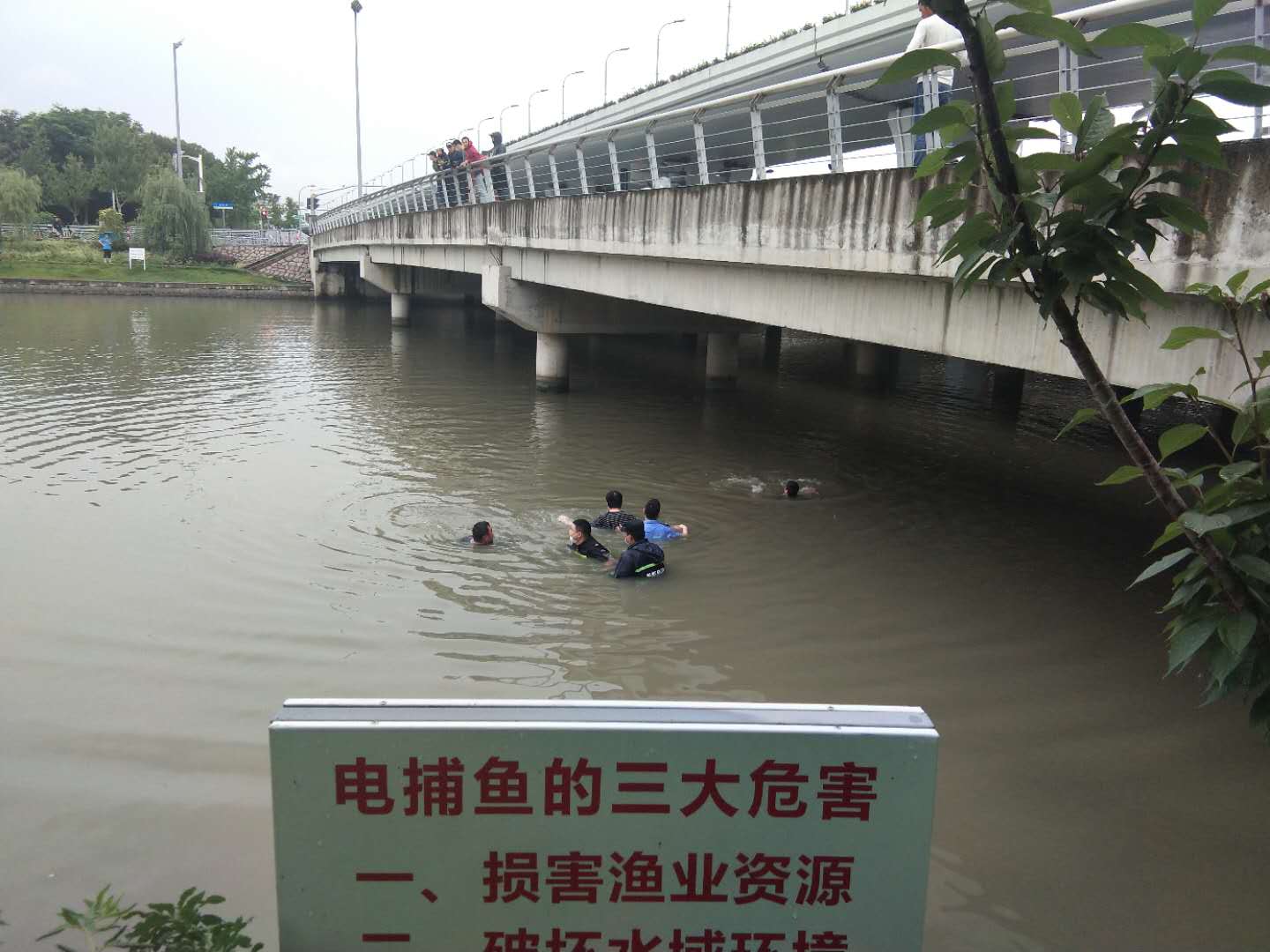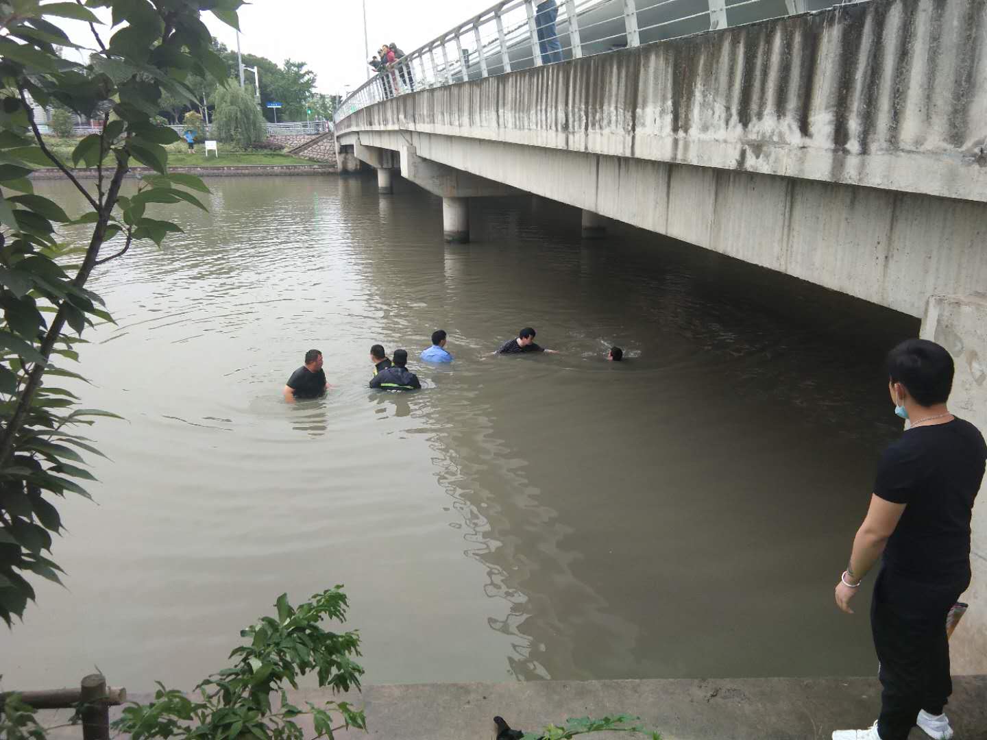 人命關(guān)天,事不宜遲。幾名隊員急忙撥打報警電話(huà)和120急救電話(huà),并在民警帶領(lǐng)下縱身跳入河內展開(kāi)營(yíng)救,因中央河道深(大約6米左右),且水質(zhì)渾濁難以發(fā)現溺水男子,導致救援非常困難。
