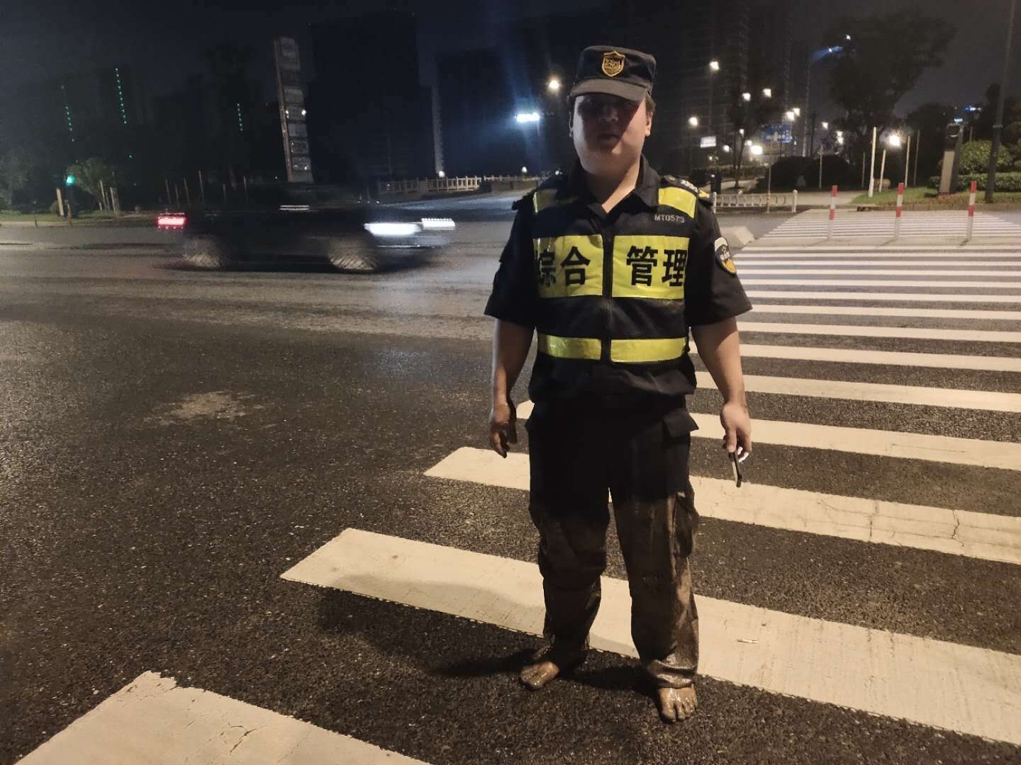 當天凌晨1點(diǎn),該項目夜班隊員溫東興、蔣超、王園召在巡查期間接到舉報電話(huà),有人在附近路邊傾倒工程渣土。三人立即將此事匯報城管中隊領(lǐng)導,在相關(guān)領(lǐng)導的帶領(lǐng)下隨即趕赴事發(fā)現場(chǎng),發(fā)現當事人正準備駕車(chē)逃離。由于近期雨水多,路面嚴重泥濘,違規渣土車(chē)行駛緩慢。三名隊員立刻下車(chē),不顧泥濘,不管滿(mǎn)身泥漿,鞋子陷入泥中就赤腳,深一腳淺一腳地奮力追趕,最終在三人的努力下,成功地將涉事人員和車(chē)輛控制。
