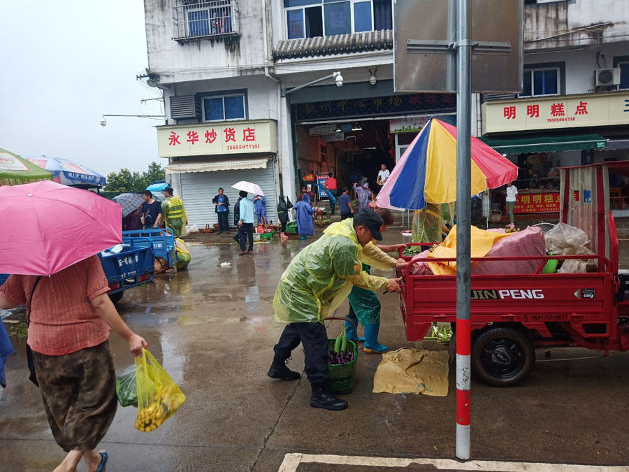 自7月7日歙縣縣城遭受洪災以來(lái),歙州市場(chǎng)無(wú)法正常營(yíng)業(yè),導致自產(chǎn)自銷(xiāo)點(diǎn)菜農無(wú)法在市場(chǎng)內銷(xiāo)售,100余戶(hù)菜農全部在市場(chǎng)外圍占道經(jīng)營(yíng),嚴重影響了鴻基商貿城內交通秩序。
