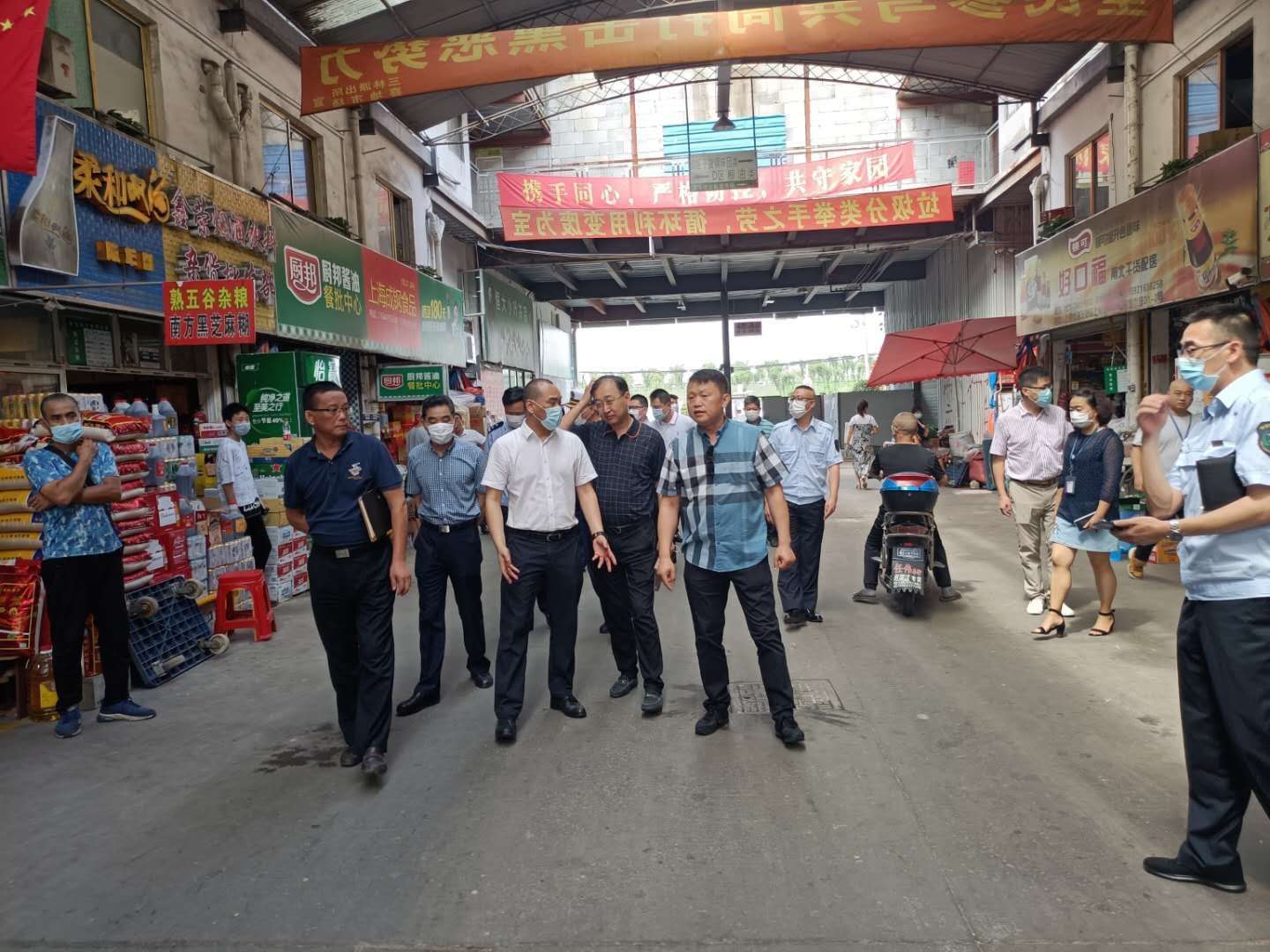7月24日浦東新區政法委副書(shū)記顧乃明一行到三林喜地農貿市場(chǎng)檢查指導疫情防控工作,并看望慰問(wèn)奮戰在疫情防控一線(xiàn)的宗保公司員工。