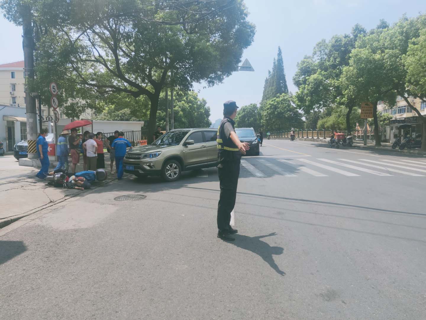 由于發(fā)生交通事故,交通堵塞,兩名隊員怕道路越堵越嚴重,就當場(chǎng)疏導交通,守護著(zhù)現場(chǎng)被撞壞的電動(dòng)車(chē),預防再次發(fā)生意外。
