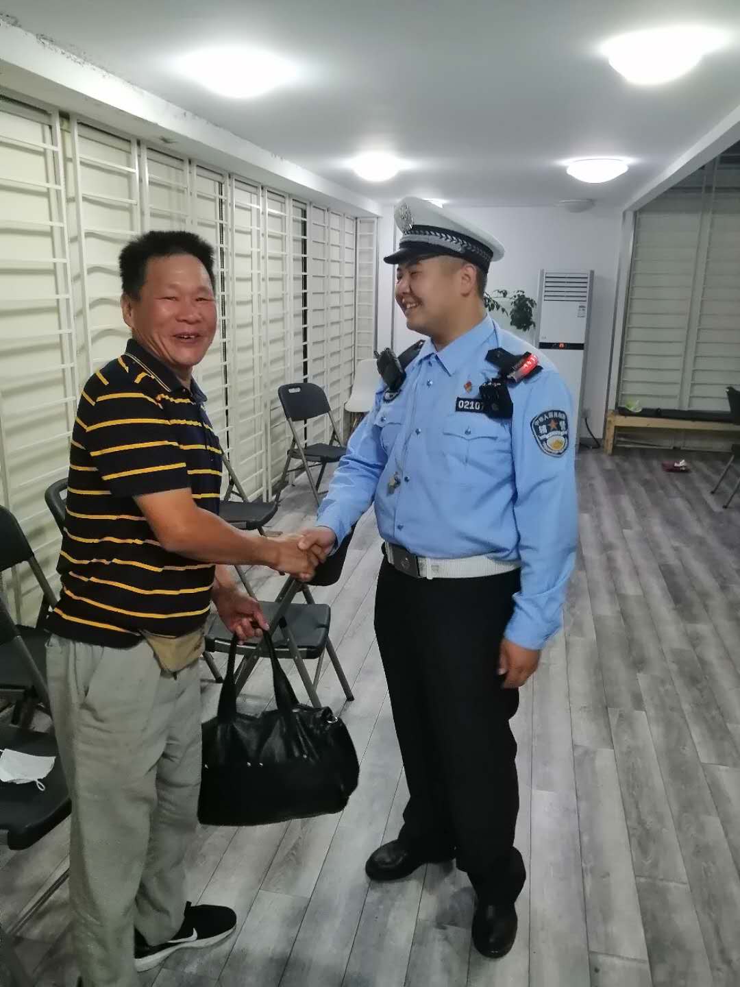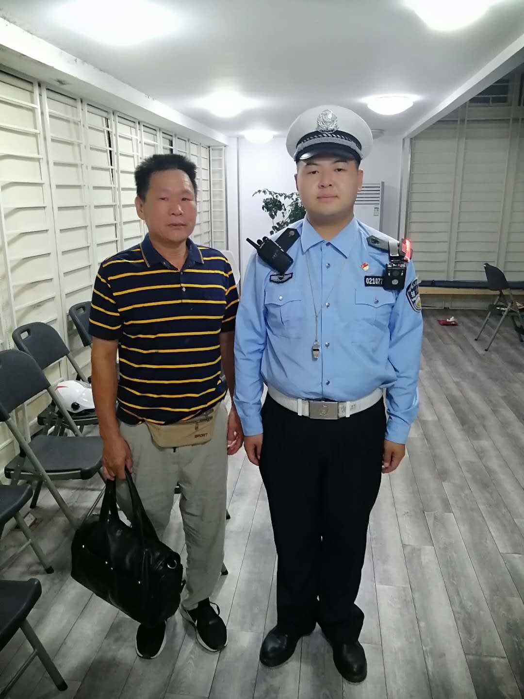 9月7日傍晚,上海宗保駐閔行虹橋輔警隊員王浩,在執勤時(shí)撿到一個(gè)黑色手提包交還失主。