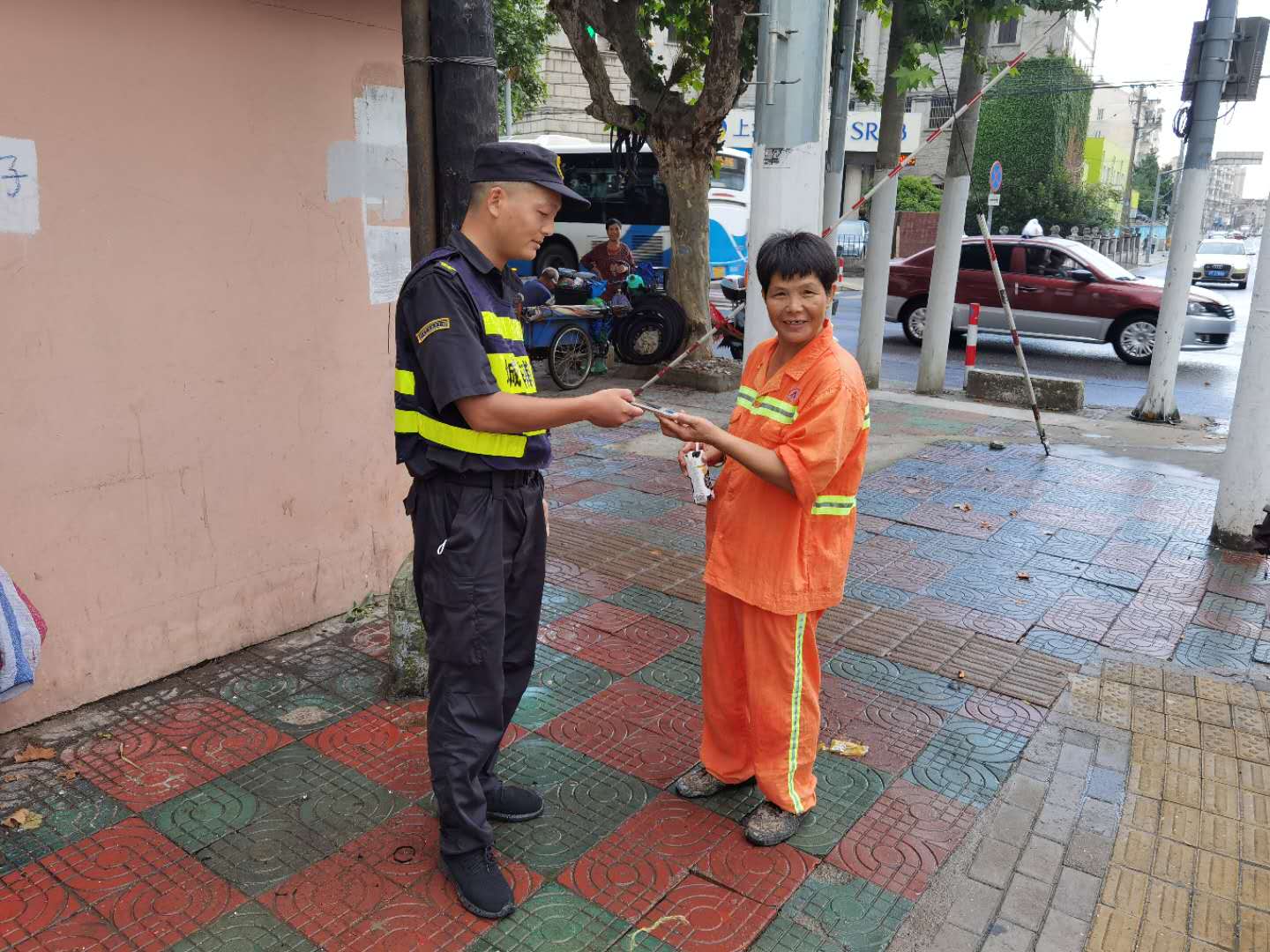 8月28日,周浦市容隊員尹釗在德浦路康沈路路口巡邏時(shí),在路邊撿到一部手機,后尋找到失主將其歸還。