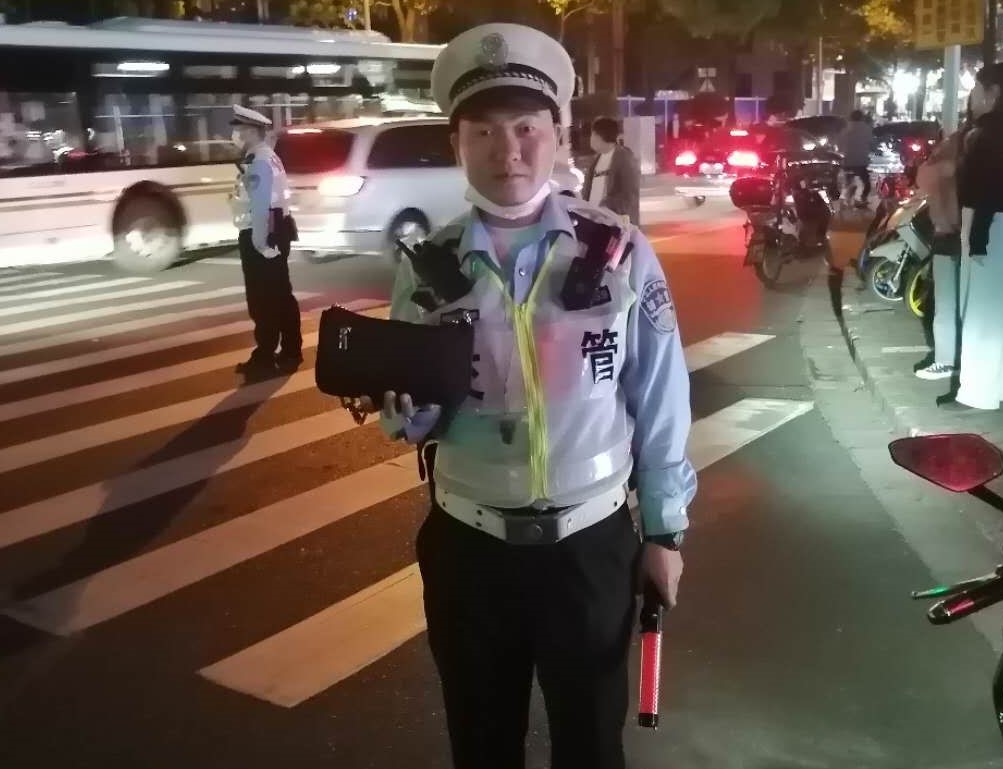 10月6日,閔行虹橋交管輔警隊員汪俊連撿到一個(gè)黑色的女士手包,上交民警幫助尋找失主。