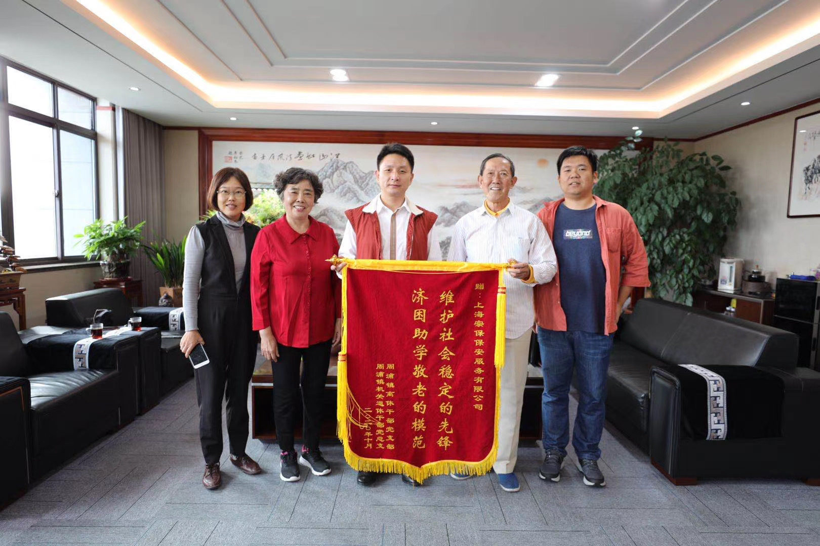 10月14日上午,老干部中心工作人員帶著(zhù)一面繡有“維護社會(huì )穩定的先鋒 濟困助學(xué)敬老的模范”的錦旗來(lái)到宗保公司,表示衷心的感謝。