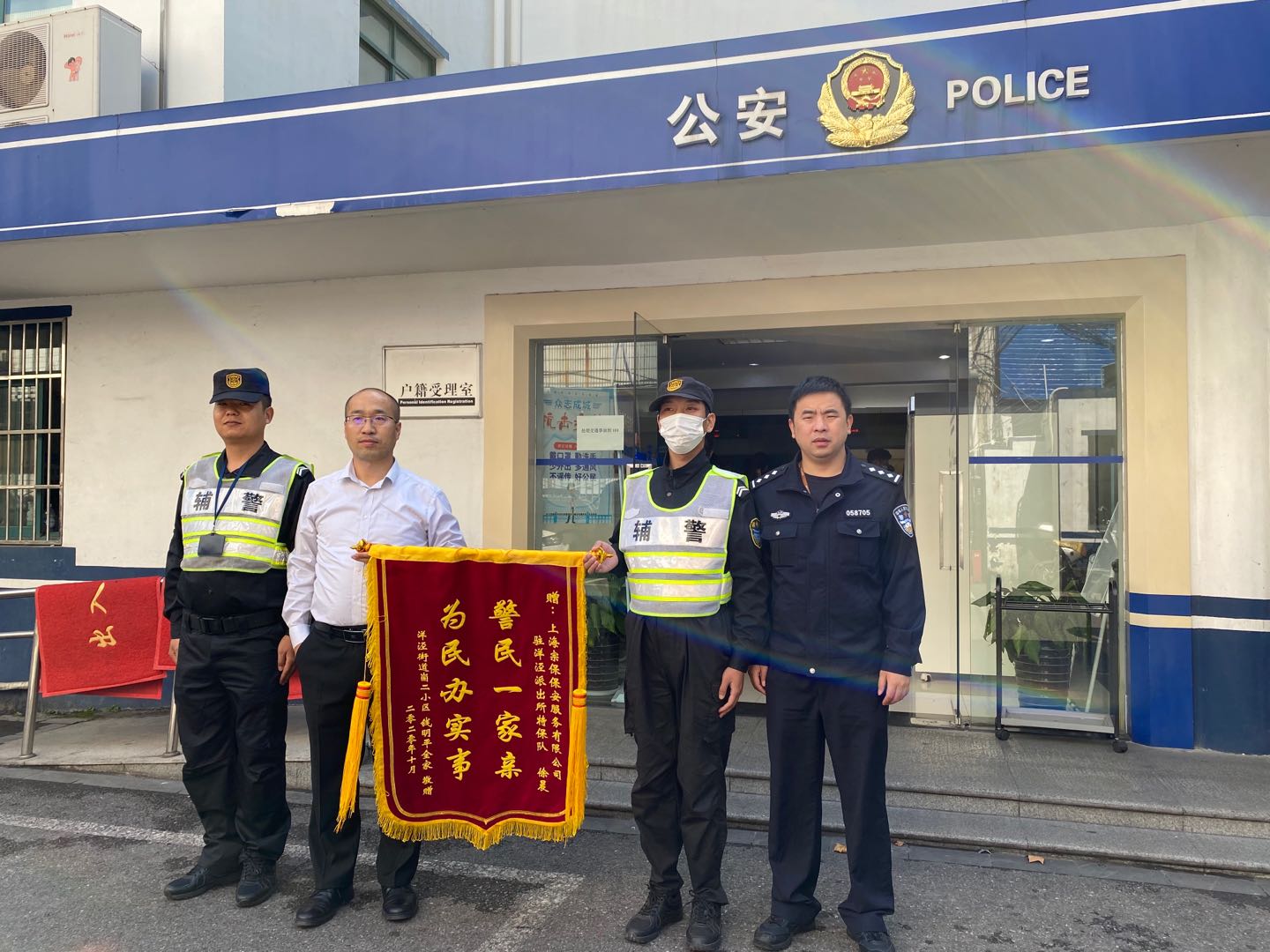 10月17日上午,宗保公司駐洋涇輔警項目收到走散兒童家長(cháng)送來(lái)的繡有“警民一家親,為民辦實(shí)事”的錦旗。