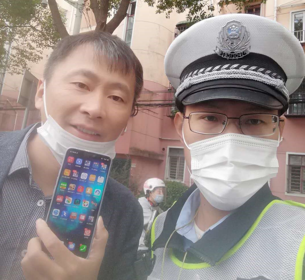 10月19日,宗保公司駐虹橋交管輔警項目隊員劉偉將撿到的一部手機歸還失主。