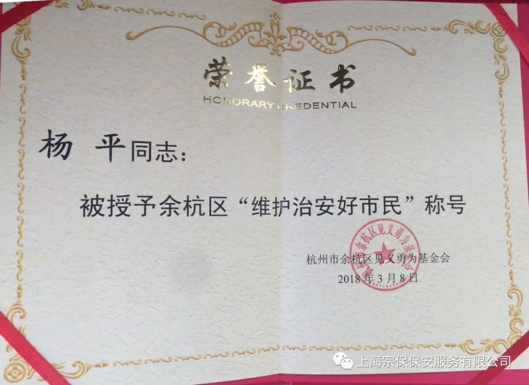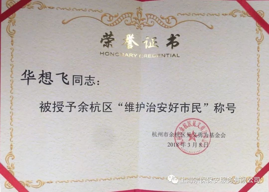 余杭區“維護治安好市民”榮譽(yù)稱(chēng)號