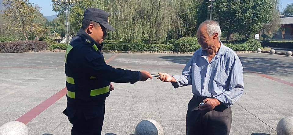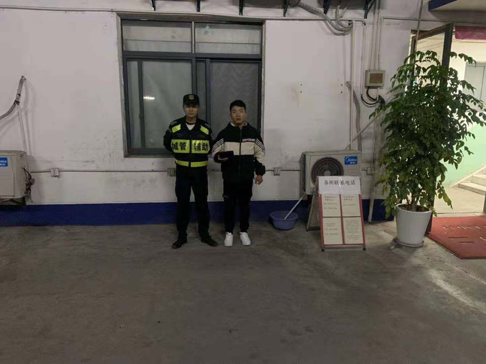 10月30日,宗保公司駐周浦市容項目隊員楊珂賀撿到錢(qián)包歸還失主,獲得好評。