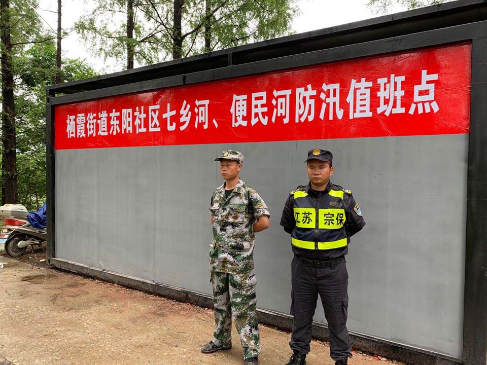 7月18日,南京市啟動(dòng)一級應急響應,汛情就是命令,抗洪刻不容緩。南京分公司駐華僑城項目接到甲方命令后第一時(shí)間抽調素質(zhì)過(guò)硬的隊員,進(jìn)行實(shí)戰演練,開(kāi)展備勤工作,積極配合棲霞街道全力參與抗洪一線(xiàn)執勤。