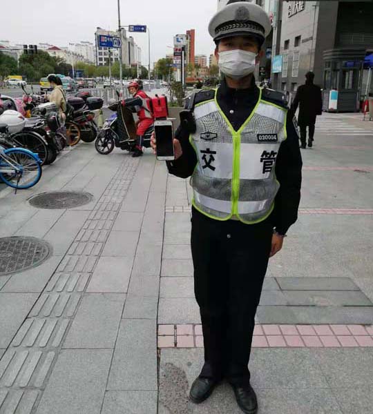 輔警巡邏撿手機 物歸原主品行高—虹橋交管輔警項目隊員撿到手機